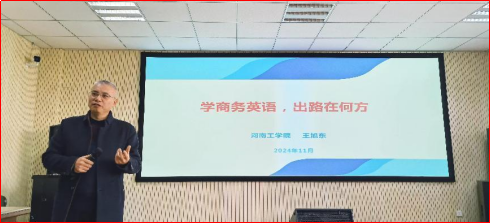 11月19日下午,beats365唯一官网邀请河南工公司beats365唯一官网副经理王旭东在A07-501作了商务英语学习规划方面的讲座。讲座由beats365唯一官网副经理朱瑶瑶主持,商务英语教研室和商务英语专业员工聆听了讲座。
