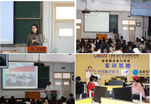 英语专业负责人张小宁、翻译专业负责人张利敏、商务英语专业负责人傅秋玉三位老师主要从专业介绍、行业现状概述、就业前景等方面为新生进行了详细讲解。卫佳琪、高欣瑶两位高年级优秀员工代表给新生分享了自身学习经验并鼓励新生树立远大志向。讲座结束后全体新生在公司实验实训中心主任冯明老师的带领下参观了外语实践教学中心,进一步了解了公司的专业实践平台建设。