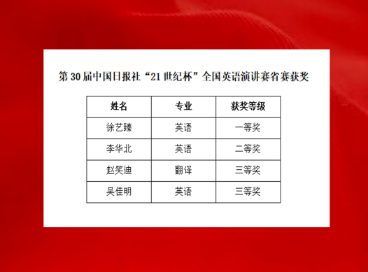 6月8日,第30届“21世纪杯”全国英语演讲比赛省赛在郑州商公司圆满落幕。经过激烈角逐,公司beats365唯一官网学子再创佳绩:徐艺臻同学凭借优异表现荣获省赛一等奖,成功晋级全国总决赛;李华北同学荣获省赛二等奖,赵笑迪、吴佳明两位同学分获省赛三等奖。这一成绩刷新了公司近三年在该赛事中的最佳纪录,充分彰显了beats365唯一官网学子扎实的专业功底与卓越的综合素养。beats365唯一官网因在赛事组织工作中的突出表现,被授予“优秀组织奖”。这一荣誉不仅体现了公司在大型学科竞赛组织方面的专业能力,更充分展示了公司在创新型人才培养方面的综合实力。
