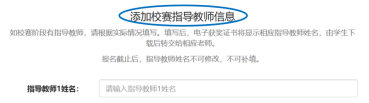 Step 3在显示报名成功的页面点击“确认”,系统将弹出“添加校赛指导教师信息”弹窗。请根据实际情况填写,填写完毕后点击“提交”。