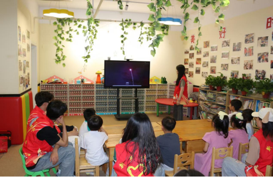 课堂伊始,小外老师以中英双语的形式为小朋友们讲述了在1952年上甘岭战役中发生的故事:黄继光所在的营地遭受到敌人的猛烈攻击,他主动请战,在战友一伤一亡后,身负重伤的他匍匐前进,逼近敌军火力点,用胸膛堵住了敌人的枪口,成功打通胜利之路。接着,志愿者为小朋友们分发天气类单词卡片,开展趣味单词教学活动。在教学过程中,志愿者运用快速问答与反复提问的方式,帮助他们加深对单词的理解。随后,志愿者与小朋友们共同进行了“听到红灯请拍桌”“趣味绘画”和“手工大王”这三项趣味游戏活动。孩子们在轻松愉悦的氛围中既学到了知识,又收获了快乐。最后,志愿者带领小朋友们学习交通规则的相关知识,让他们深入了解交通标识的含义、出行安全要点等内容,增强其交通安全意识,为孩子们的日常出行筑牢安全防线。
